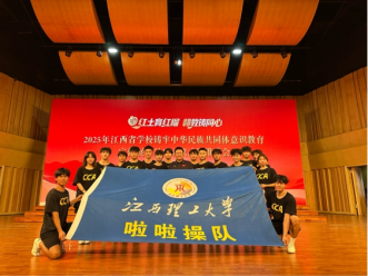 On September 16, the launch ceremony of the 2025 "Jiangxi Provincial School Education and Publicity Month for Forging a Strong Sense of Community for the Chinese Nation" was grandly held in Nanchang. Jiangxi University of Science and Technology's cheerleading team was invited to perform at the ceremony, vividly interpreting the cultural charm of the diverse and integrated Chinese nation and the vigorous spiritual outlook of contemporary youth through a wonderful ethnic aerobics performance. The event was co-sponsored by the United Front Work Department of the CPC Jiangxi Provincial Committee, the Jiangxi Provincial Department of Education and the Jiangxi Provincial Ethnic and Religious Affairs Bureau, and undertaken by East China Jiaotong University.